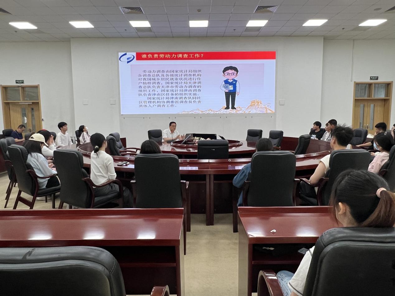 紧接着,讲座进入了统计调查与劳动力调查的议题。郑博予组长详细解读了这两项调查的目的和意义,指出它们不仅是政府制定经济政策的重要依据,也是企业和个人了解市场动态、把握发展机遇的关键工具。在宣传统计法的过程中,郑组长特别强调了依法统计的重要性,并提醒学生们在未来的职业生涯中,要时刻遵守统计法律法规,确保数据的真实性和准确性。