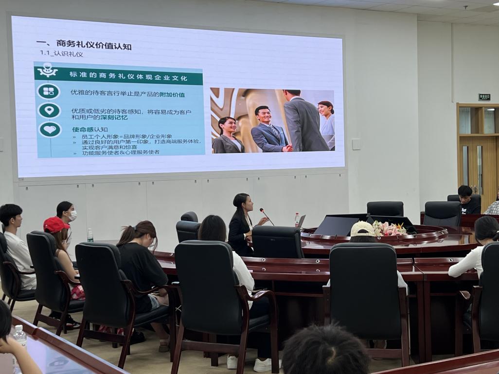 讲座伊始,袁芳总监以职场礼仪为切入点,强调了其在职业生涯中的重要性。她指出,良好的职场礼仪不仅能够展示一个人的专业素养,更是建立良好人际关系、提升工作效率的基石。在模拟话术环节,袁芳总监通过一系列生动的实例,教授学生们在不同场合下展现得体言行举止的技巧,为学生们的职业发展提供了宝贵指导。