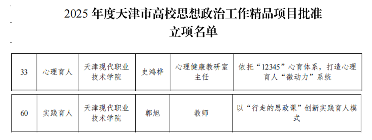 同时,经学校推荐、专家组评审,sunbet心理育人、实践育人项目入选2025年度天津市高校思想政治工作精品项目批准立项名单。