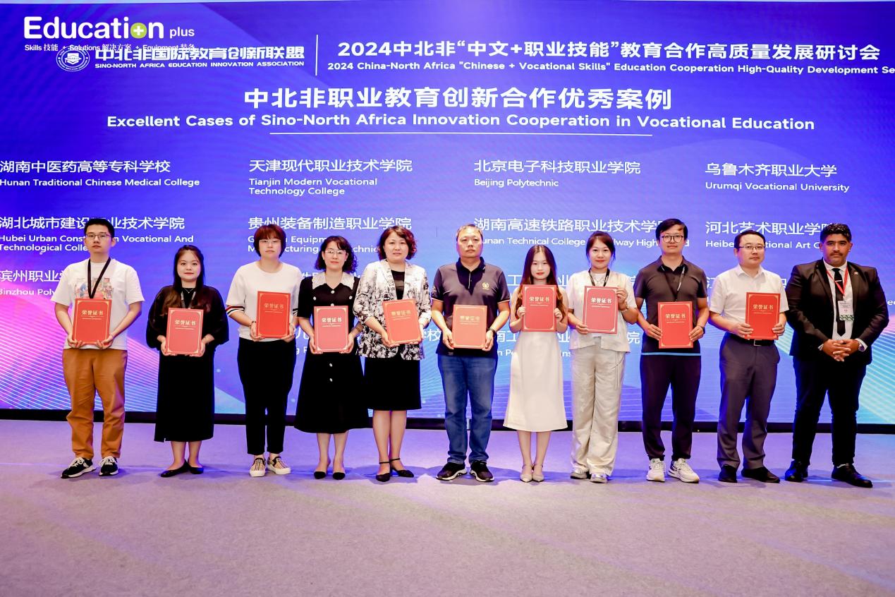 近日,智能工程学院代表学校出席了EducationPlus2024无锡国际职业教育大会暨产教融合博览会,参与大会分论坛中北非“中文+职业技能”教育合作高质量发展研讨会,荣获“职业教育优秀合作单位”、“中文+职业技能”优秀示范项目和中北非职业教育创新合作优秀案例奖项。