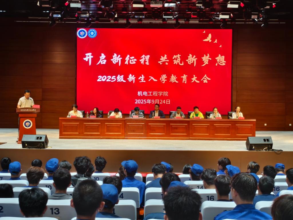 为帮助新生快速适应大学生活,找准自身定位,进一步明确大学阶段的学习目标与未来职业规划,9月24日下午,机电工程学院在报告厅隆重召开2025级新生入学教育大会,围绕专业技能培养、教学安排、学生管理、宿舍管理、资助政策、创新创业、心理健康、学团工作、征兵政策等方面对同学们开展教育。机电工程学院党支部书记、院长刘仲海,副院长赵跃武及全体辅导员老师、教务老师和2025级新生共同参加大会。