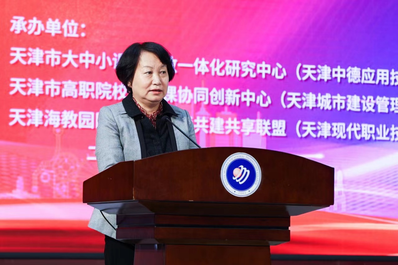 比赛最后,天津市大中小学思政课一体化教学研究联盟秘书长、天津科技大学马克思主义学院院长朱新华教授对本次大赛进行了点评。她指出,本次大赛作品质量高、内容好,课程思政组作品内容涵盖了科学技术、数学等课程,参赛教师能结合不同课程特点,深入挖掘课程思政元素,有机融入教学,达到润物无声的育人效果。思政课程组作品紧紧围绕社会主义核心价值观等内容,通过故事化等教学方式,展示了新时代中职学校思政课教师的风采。