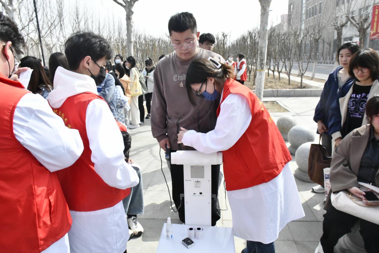 此次活动,开设了人体成分分析,血压、血脂、血糖血氧测量等人体健康检测服务项目。活动中,在志愿者的引导下,同学们依次排好队伍,专业教师带领本专业学生利用教学仪器为同学们测量血压、血糖、心率、人体成分等,待测量结果出来后,针对每一位同学指标结果,耐心细致地“一对一”分析解答,仔细询问身体状况,用通俗易懂的语言给出了一些健康指导和营养膳食建议,他们的专业素养和热情周到的服务也赢得了同学们的一致的好评。