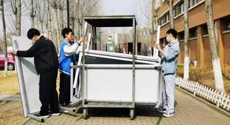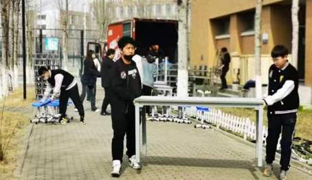 作为大赛承办方之一,智能工程学院师生在赛前一周就开始为比赛场地进行布置。布置桌椅板凳、摆放机器设备、制作指示标牌、提供接待服务等,随处可见志愿者们的身影,即使长时间在低温的室外,“红马甲”们无一退缩,脸上洋溢的都是开心和满足的笑容。