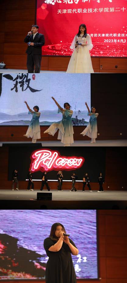 开幕式在师生精心准备的科技文体节宣传视频中拉开帷幕,视频中全景展示了sunbet科技文体节21年来丰富多彩的第二课堂活动情况以及开拓创新、砥砺奋进的发展历程,立体呈现出在思想教育、学术科技、社会实践和文体素质等方面的文化育人成效。智能工程学院团总支书记刘琛以科技文体节期间的特色活动项目“新时代京津冀实践行”为例做了经验分享,号召广大学生要通过科技文体节的活动平台,立足专业、增长才干,不断提升专业技术应用水平。管理工程学院金融专业的刘鸿丽同学围绕提升技术技能、培育文化素养等方面做了典型发言。开幕式现场,学院艺术团的同学们带来了精彩纷呈的文艺演出,她们用活力阳光的街舞表演展现出现代学子的青春热情;智能工程学院李富洋同学的男生独唱《向往》,用歌声表达出现代学子在中华民族伟大复兴的新征程上展现出的使命担当;还有同学们熟悉的校园乐队和校园歌手演唱《春风十里》、《这世界那么多人》等耳熟能详的青春励志歌曲,以及诗歌朗诵《精神的力量》和民族舞蹈《采薇》等文艺表演。用歌声唱响时代强音,用旋律奏响奋进乐章,用奋斗激扬青春姿态,在全面建设社会主义现代化国家新征程上唱响青春之歌。