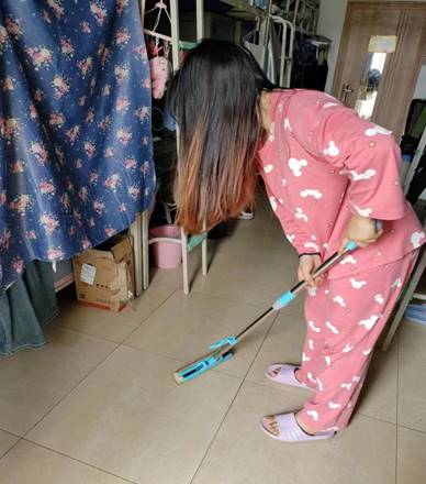 同学们利用周六日的休息时间清理自己的宿舍,洗净脏衣脏袜,整理桌面。在做好自我宿舍卫生的前提下,勤工助学的学生还主动号召其他同学一起参与到日常劳动中来,大家一起营造一个和谐干净的宿舍环境。同学们用文字照片记录日常,并通过个人账号展示劳动成果,在同学当中起到了正面引导作用。