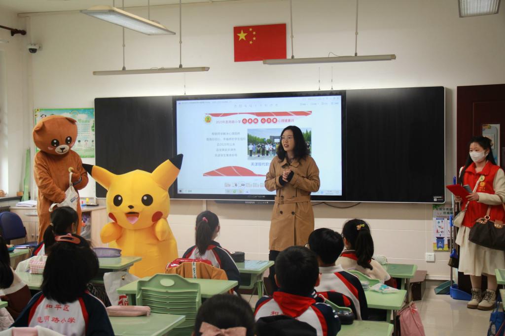 为深入学习贯彻党的二十大精神,落实立德树人根本任务,积极响应市教育两委统筹全市大中小学心理健康教育的号召,丰富我校学生心理健康月活动模式,培育学生乐观阳光的心态,4月21日,应和平区昆明路小学学生心理健康素质培养中心邀请,我校心理健康教育中心兼职心理咨询师、管理工程学院辅导员赵辰欣带领管理工程学院“蓝丝带”心理社团的20名学生走进昆明路小学,为四年级全体在校生进行了团体心理辅导。