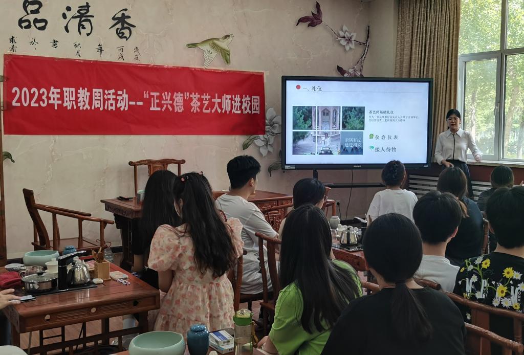 为深入学习贯彻习近平新时代中国特色社会主义思想和党的二十大精神,推动现代职业教育“一体两翼五重点”建设改革,管理工程学院于5月18日特邀北京正兴德茶庄直播间主播、国家一级茶艺师宫敬媛走进校园为学院旅游专业和市场营销专业学生讲解并传授了茶文化和数字营销的知识以及直播电商技能和茶艺技能。