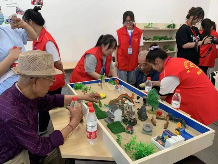 最后,老人们参与了智慧健康养老服务与管理专业的沙盘游戏体验,通过沙盘游戏,帮助老人们疏导情绪,同时为医护人员提供了更有针对性的专业辅导。该专业的同学们在活动中增加了实践锻炼,对熟悉老年群体心理特征,更好开展专业学习、提升专业素养积累了实践经验。