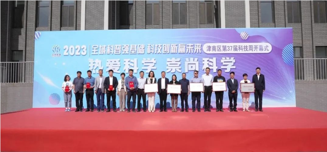 5月21日上午,以“热爱科学、崇尚科学”为主题的津南区第37届科技周开幕式和主场活动在海河教育园区南开学校成功举行。市科协党组成员、一级巡视员、科技社团党委书记卢双盈,区委常委、宣传部部长崔德行,区人大副主任薛春晓,区政府副区长薛彤,区政协副主席程殿密出席。与会领导为5家2022年天津市科普基地授牌,我校孔祥蕊老师作为科普基地代表参与了授牌仪式。