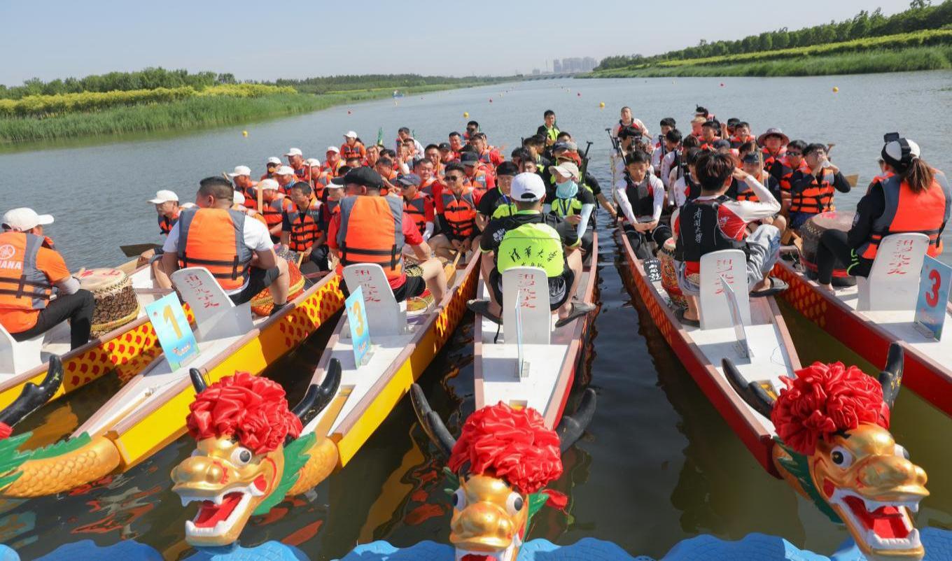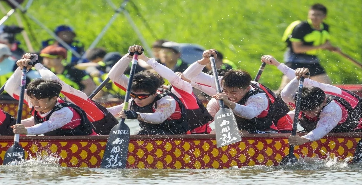 端午节是中华民族的传统节日,为弘扬优秀传统文化,挖掘传统节日的深厚文化内涵,6月3日,“潮起天开,龙腾海教”2023天津海河教育园区龙舟邀请赛开赛,来自北京大学、清华大学、中央民族大学、南开大学、天津大学、天津海运职业学院等院校代表队及江苏商会、湖南永州商会、天津市津南区青年商会等商会代表队共13支队伍奋楫竞渡、激情挥桨。我校50名学生代表受邀现场观看了本次龙舟比赛。