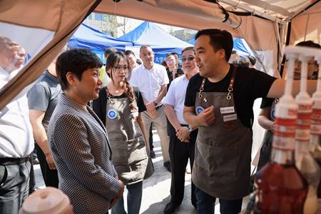 sunbet共有6个优秀学生创新创业项目团队参展,在活动现场,市领导及市教委领导一行驻足我校展位参观指导,对我校特色项目给予充分肯定,并对我校创客团队表示认可与鼓励。生物工程学院的学生团队带来了研发的“星时咖啡精灵”移动式咖啡车参展。在炎热的六月,为参展的人们带来了一杯杯醇厚清凉的咖啡,给火热的现场增添了不一样的感受。另外,其可移动的方式,以及“麻雀虽小,五脏俱全”的设计,令到场的各位领导印象深刻。