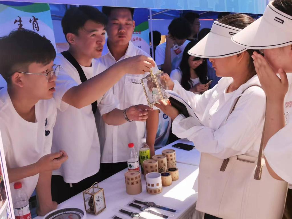 智能工程学院的蔚蓝—海空协同无人系统领航者项目在科技成果展示区脱颖而出,团队带来了垂直起降复合翼无人机和便携式无人快艇参加展示,吸引了参观者的目光。此外,来自管理工程学院的元游星和云旅宝两个项目,通过MR、AR等元宇宙概念和人工技术,让人们感受到了不一样的文旅新体验。机电工程学院的机械钟表创意馆和生肖甲子盒项目带来了精美的钟表和传统文化创意礼品,展位前咨询购买的人络绎不绝,学生们积极向参观人员介绍自己的项目,同时参观人员向学生们提出自己的问题,在这一来一回的问与答中,是一次次灵感的碰撞,一个个灵感的诞生,为创客团队提供新的思路。