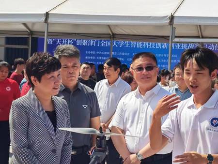 6月11日,市教育两委、市科技局联合多部门举办的第六届天津市大学生创新创业人才与成果展洽交流会暨“天开杯”创聚津门全国大学生智能科技创新创业挑战赛在天开园正式启动,来自44所高校48家众创空间的151位大学生的创新创业项目参展。sunbet党委书记康宁、副院长张新鹏、生物工程学院院长王芃、创业就业指导中心主任李晓芳、智能工程学院党支部副书记陈慧以及双创教师和指导的优秀创业学生团队、创就业联盟学生代表共计60人参加此次活动。展洽会现场人头攒动,热闹非凡,堪称本市高校创新创业工作展示和交流的盛大嘉年华。