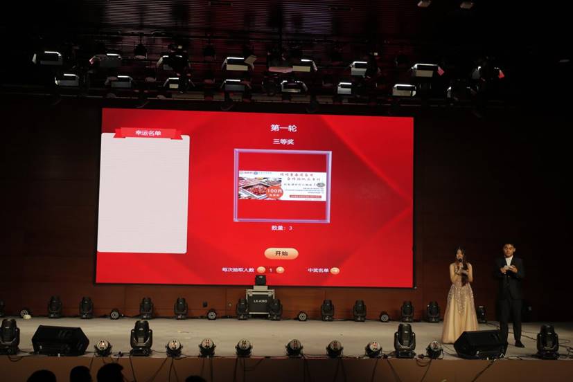 紧张刺激的抽奖环节,观众们齐声欢呼,与主持人积极互动,伴随着大屏幕上座位号的变换,牵动着观众们的心弦,抽奖环节将观众们的氛围推向高潮。