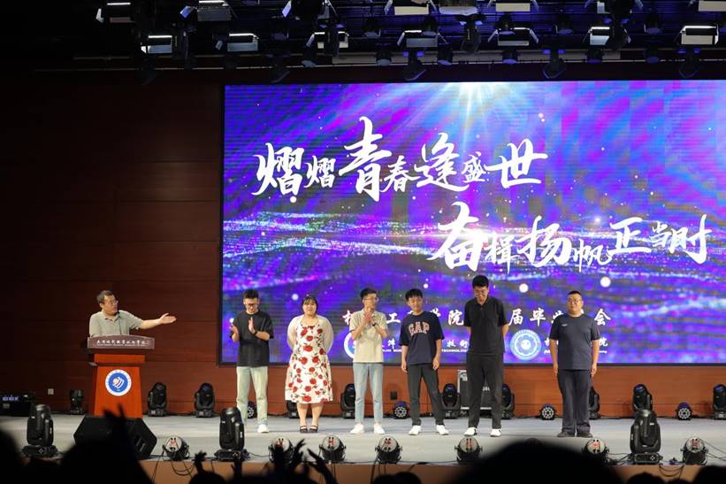 时光荏苒,岁月如梭,美丽的校园印刻着我们的笑语欢歌;逐梦青春,扬帆远航,跳动的心房满载着往日的多彩时光。世间所有的相遇都是久别的重逢,所有的别离都是为了再次的相遇。三年前怀揣青春之志的追梦少年,如今也即将完成学业走向另一段新的旅程。值此毕业之际,机电工程学院于6月15日在报告厅举办“熠熠青春逢盛世,奋楫扬帆正当时”2023届毕业晚会。出席本次毕业晚会的领导有党委副书记、副院长、工会主席程非凡,纪委书记韩淑君,副院长张新鹏,学工部部长龙威林,生物工程学院党总支书记王玲,管理工程学院党总支书记赵红艳,公寓管理中心主任杨莉,学生处副处长左宏伟,智能工程学院党支部副书记陈慧,信息工程学院党支部副书记 冯泽,机电工程学院党支部书记、院长刘仲海,机电工程学院党支部副书记杨兰福,机电工程学院辅导员老师与全体毕业学生。