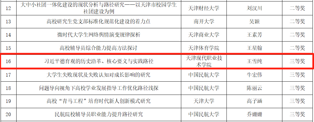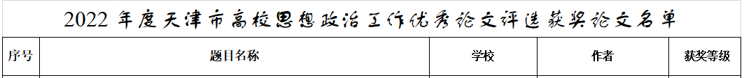 近日,天津市教育两委公布了2022年度天津市高校思想政治工作优秀论文评选活动结果。我校辅导员贾玮和思政课教师王雪纯提交的两篇论文喜获三等奖。