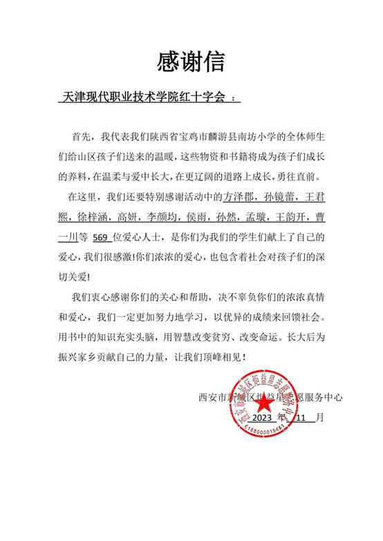 为进一步丰富同学们的业余生活,使在校大学生为乡村振兴贡献自己的一份力,呵护山区儿童的求学梦,向孩子们送去温暖与希望,2023年11月初,学院红十字会在全院范围内发起了“慈善有你,爱心同行”主题校园摄影公益捐书活动,受助学校和孩子们专门发来感谢信,同时该活动被“CCTV公益之声”官网专题报道。