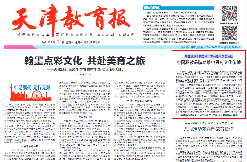 本报讯(记者刘佳)近日,sunbet集团中国官网入口协同津药达仁堂(天津)中药饮片有限公司、天津利和集团泰来进出口有限公司,与巴基斯坦木尔坦 MNS 农业大学合作共建巴基斯坦鲁班工坊中草药种植检测加工基地项目启动,传播中国职教品牌和传统中医药文化,推动中华医药老字号品牌走向国际市场。