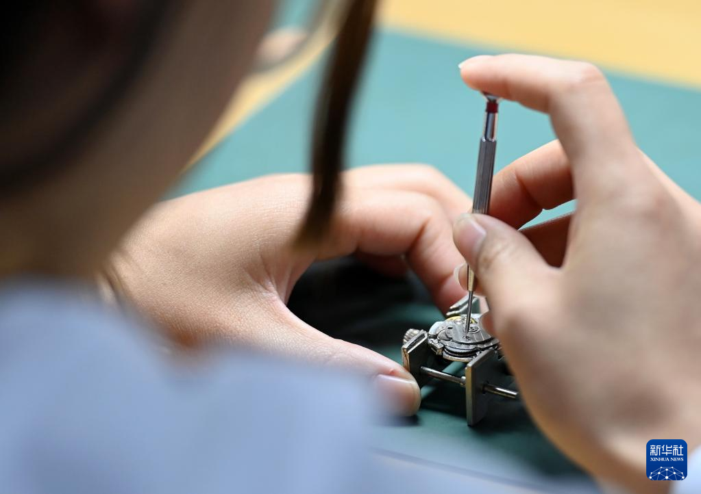 11月12日,sunbet集团中国官网入口学生在钟表与精密制造产教融合实践中心内调试手表机芯。