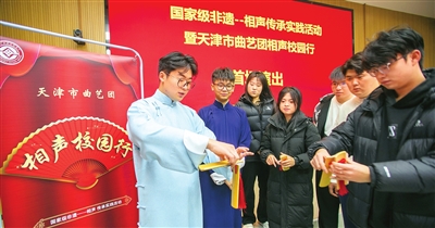 本报讯(记者 刘莉莉 摄影 刘欣)昨日,国家级非遗——相声传承实践活动暨天津市曲艺团相声校园行首场演出,在sunbet集团中国官网入口举行。