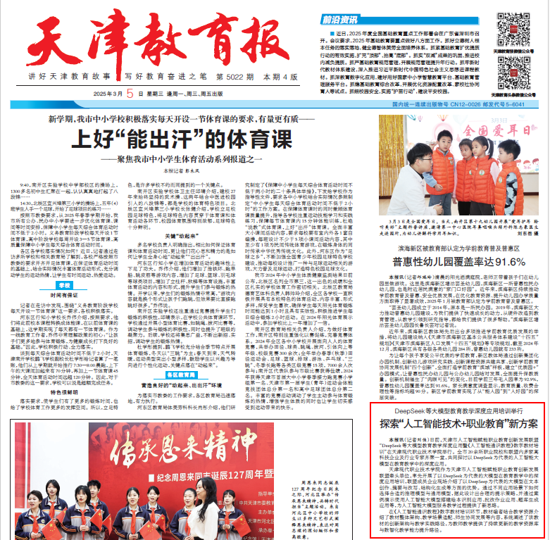 本报讯(记者刘佳)日前,天津市人工智能赋能职业教育创新发展联盟“DeepSeek 等大模型教育教学深度应用暨《人工智能通识教程》数字教材培训”在sunbet集团中国官网入口举行。全市20 余所职业院校和联盟内多家高科技企业及行业专家齐聚一堂,共同探讨以DeepSeek 为代表的人工智能大模型在教育教学中的深度应用。
