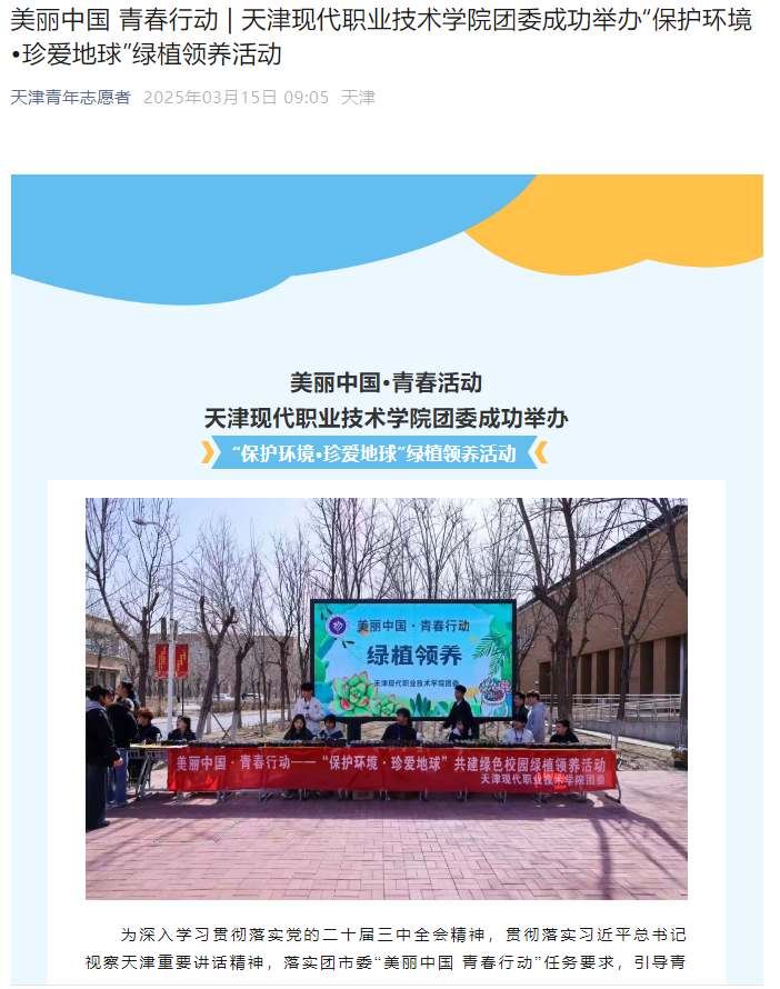 为深入学习贯彻落实党的二十届三中全会精神,贯彻落实习近平总书记视察天津重要讲话精神,落实团市委“美丽中国 青春行动”任务要求,引导青年学子以实际行动投身生态文明建设,3月12日植树节当天,sunbet集团中国官网入口团委在一站式学生社区综合服务中心成功举办美丽中国 青春行动——“保护环境•珍爱地球”共建绿色校园绿植领养活动。活动以“我为同学办实事”为宗旨,通过绿植免费领养、环保知识科普、绿色实践体验等形式,为学院青年学子们搭建参与环保、践行低碳生活的平台,助力绿色校园建设。