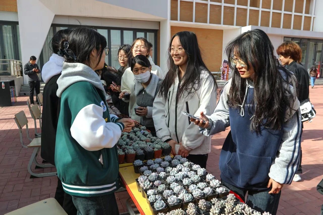 为满足青年学子需求,学院团委精心准备了多肉绿植700余盆,活动现场排起长队,同学们通过前期互动参与打卡进行抽奖兑换。学校团委希望通过这些多肉绿植,为同学们营造温馨的宿舍环境,缓解学习压力,让大家在照顾绿植的过程中,学会耐心与责任,感受生命成长的奇妙,从而进一步激发同学们参与绿色校园建设的热情。