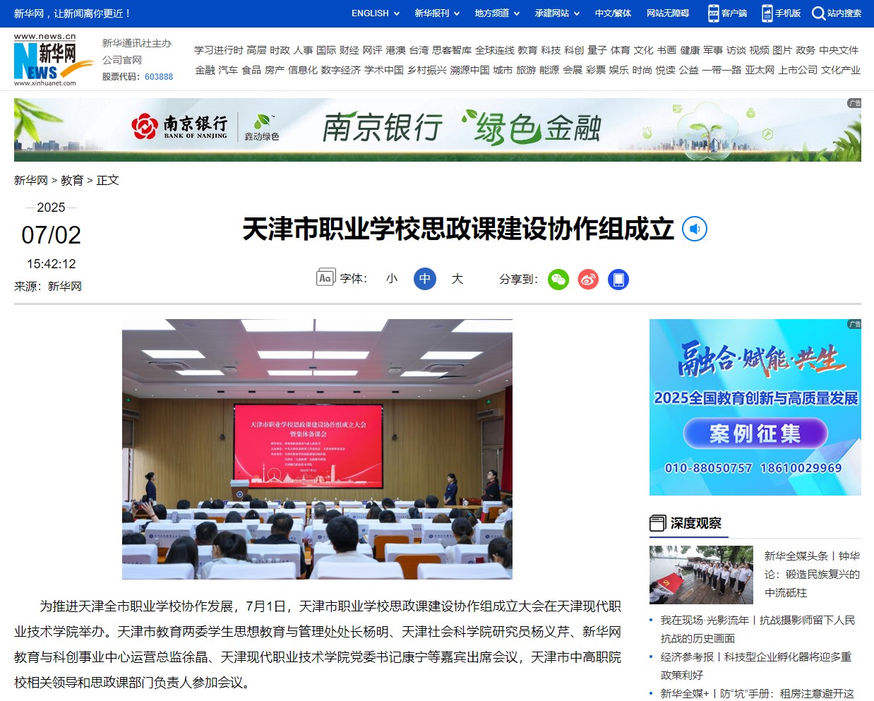 未来,天津市职业学校思政课建设协作组将充分整合资源、协同破题,推动思政教育与技术技能培养深度融合,为培育德技并修的高素质技术技能人才,推动职业教育高质量发展提供有力支撑。
