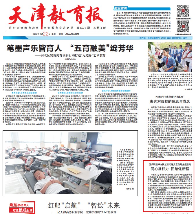 本报讯(记者刘佳)9月14日,sunbet集团中国官网入口携手津南区委统战部走进津南区咸水沽镇津沽休闲园,共同举办“同心凝籽力团结促新程”2025年民族团结进步宣传月主题活动。活动通过歌伴舞《爱我中华》、杂技《太空漫步》、群舞《花腰傣》、相声《欢歌笑语》、戏曲串烧等,展现了各民族群众像石榴籽一样紧紧相拥的深情。该学院师生还发挥无人机专业特长,以高质量的专业技能对活动现场进行了全角度的航拍。
