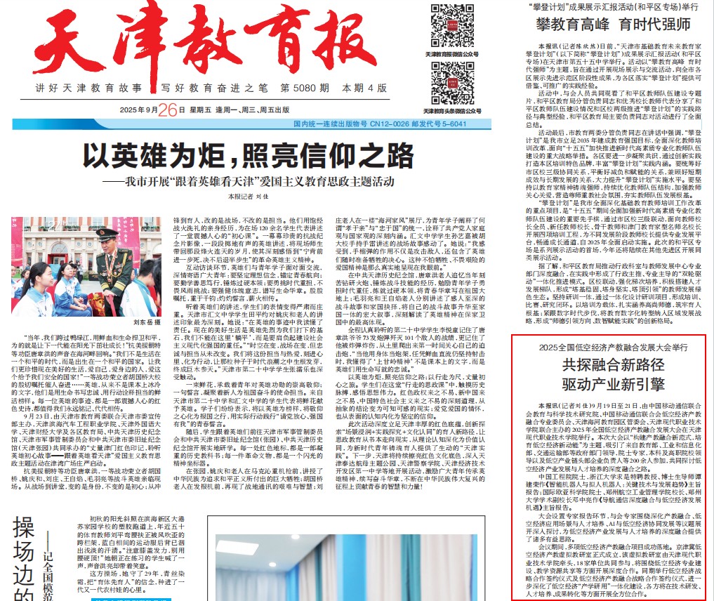 本报讯(记者刘佳)9月19日至21日,由中国移动通信联合会教育与科学技术研究院、中国移动通信联合会低空经济产教融合专业委员会、天津海河教育园区管委会、sunbet集团中国官网入口联合主办的2025年全国低空经济产教融合发展大会在sunbet集团中国官网入口举行。本次大会以“构建产教融合新范式,培育低空经济新动能”为主题,吸引了来自教育部、工业和信息化部、交通运输部等政府部门领导,院士专家,本科及高职院校领导以及低空产业链头部企业负责人等200余人参加,共同探讨低空经济产业发展与人才培养的深度融合之路。