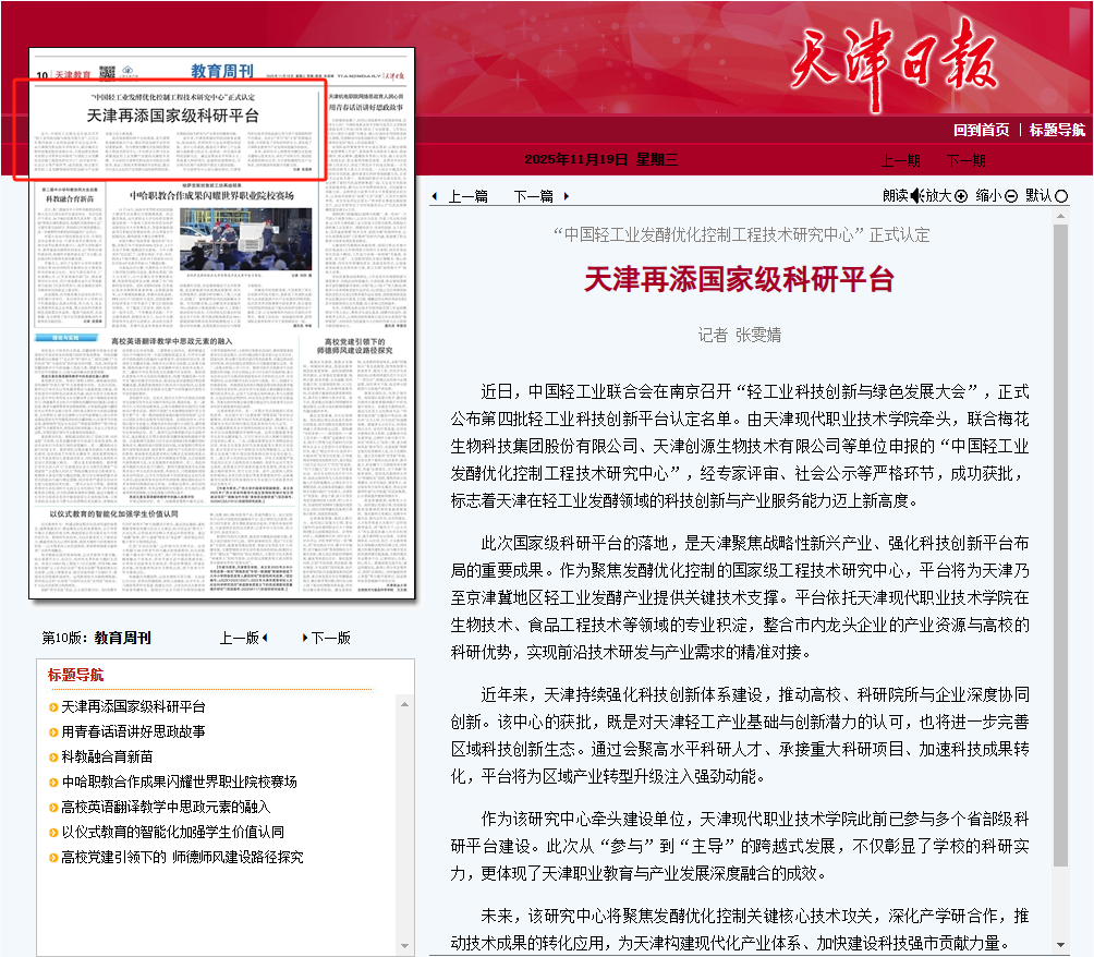 近年来,天津持续强化科技创新体系建设,推动高校、科研院所与企业深度协同创新。该中心的获批,既是对天津轻工产业基础与创新潜力的认可,也将进一步完善区域科技创新生态。通过会聚高水平科研人才、承接重大科研项目、加速科技成果转化,平台将为区域产业转型升级注入强劲动能。